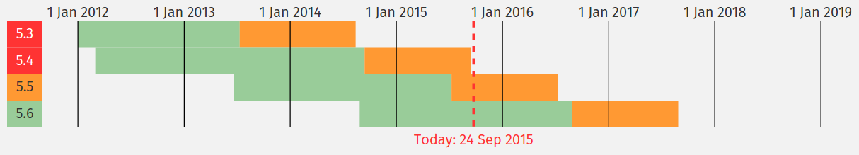 Let's start with where we came from. PHP 5 was first released in July 2004 (11 years ago!), and then really snapped into focus as a modern language in 2009 with PHP 5.3.